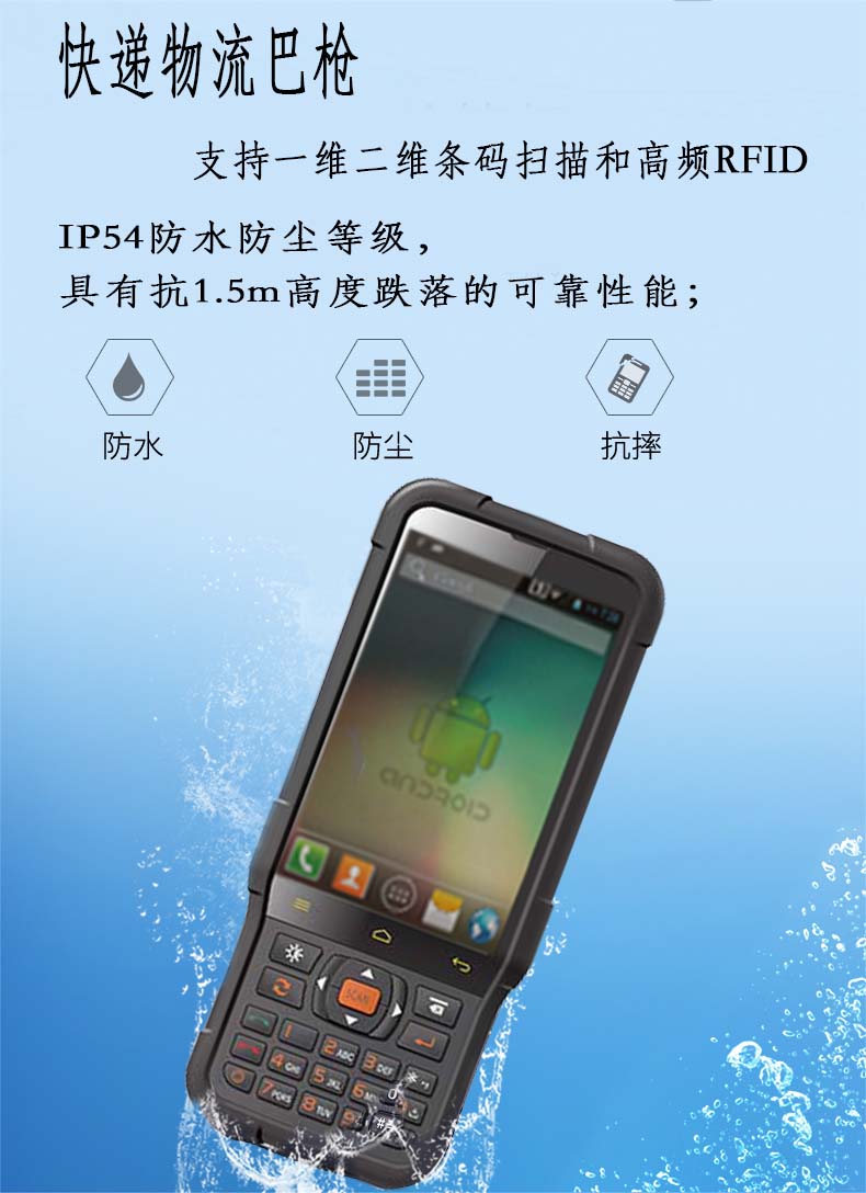 物流快遞巴槍優(yōu)勢 防跌落-IP54防護等級,具有1.5米高度跌落的可靠性;