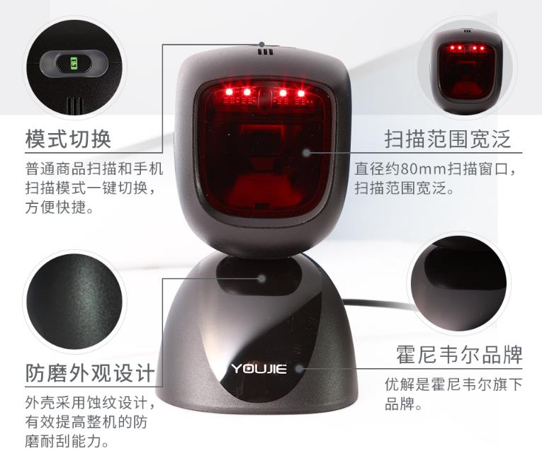 隨著二維碼應(yīng)用的日益廣泛,如何選擇一款高性價(jià)的掃描器成為用戶關(guān)注的焦點(diǎn)。新推出的霍尼韋爾 Youjie HF600 是一款設(shè)計(jì)領(lǐng)先、性能優(yōu)越的二維固定式條碼掃描器,可廣泛應(yīng)用于商業(yè)零售、物流追蹤、藥店管理、辦公自動(dòng)化等眾多場(chǎng)合。